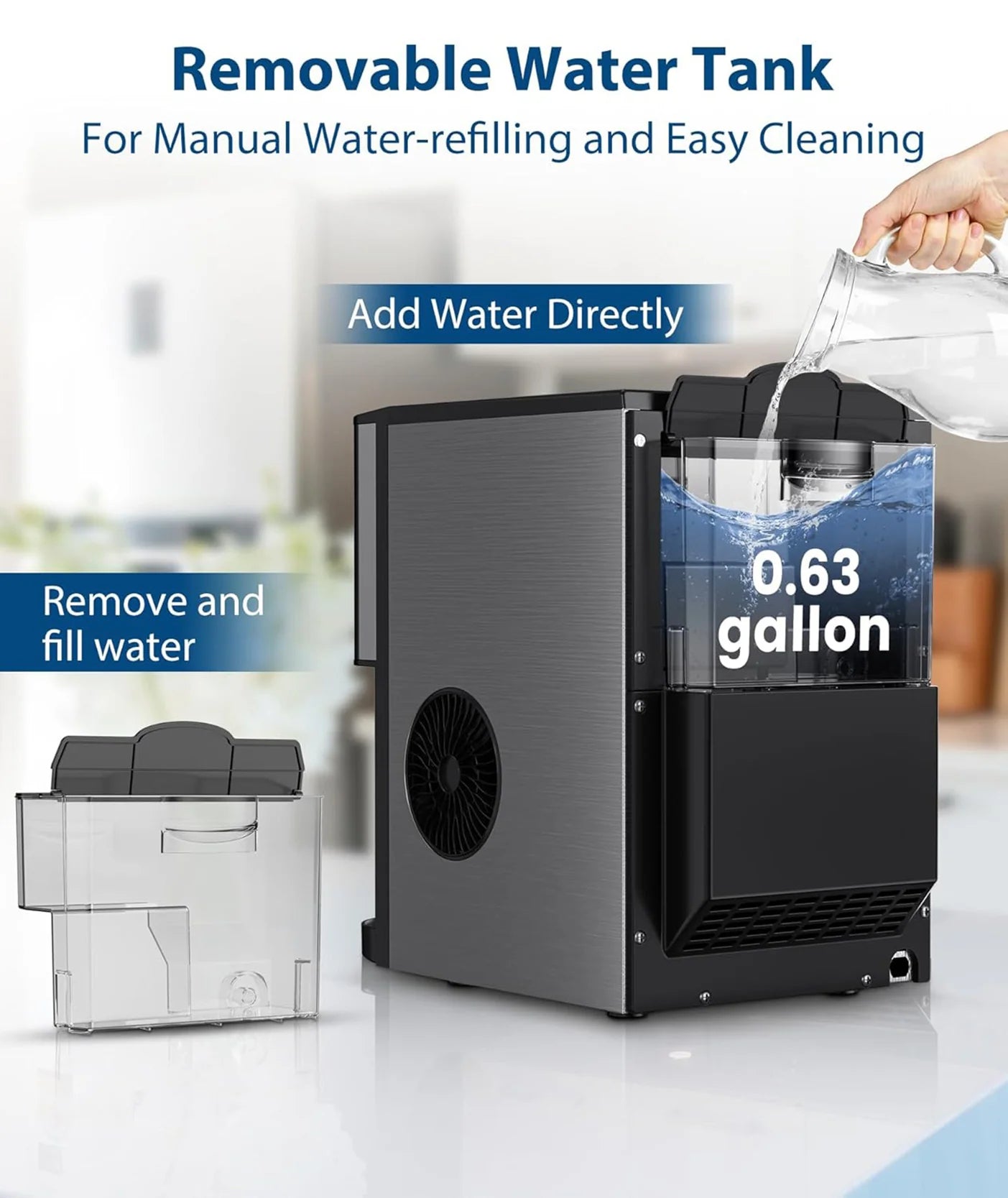 Removable Water Tank & Built-In Ice Storage